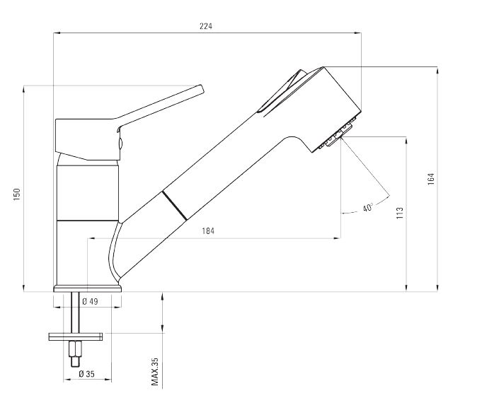 Zasięg wylewki: 184 mm