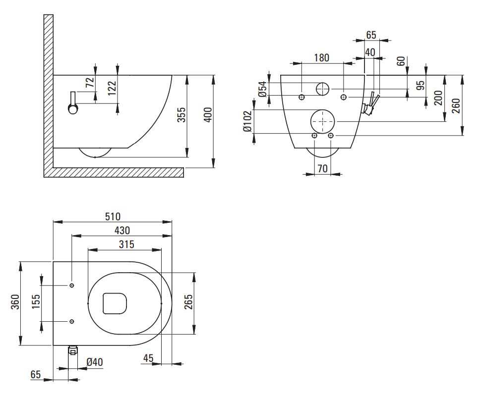 Dyskretnie ukryta dysza natryskowa z regulacją kąta wypływu wody i opływowy kształt wnętrza miski pozwala z łatwością utrzymać ją w czystości.