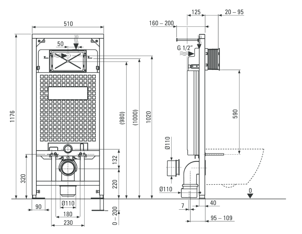 Stelaż podtynkowy do misek ustępowych wiszących