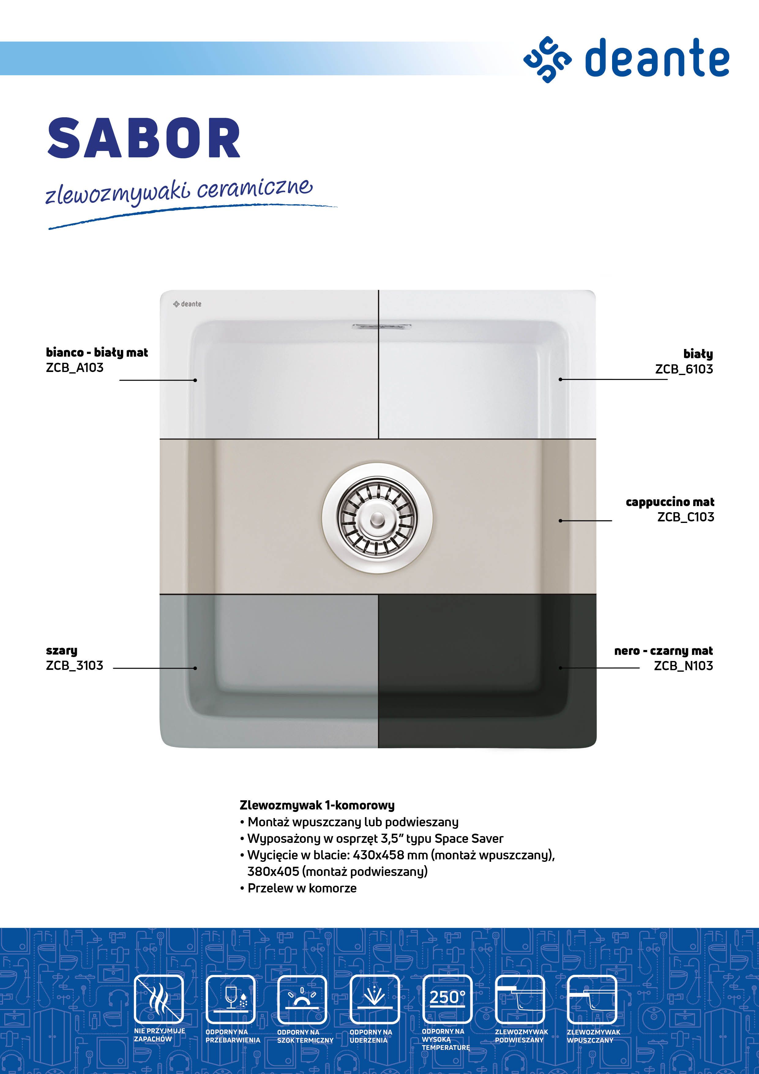 Deante Sabor Zlewozmywak 1-komorowy bez ociekacza