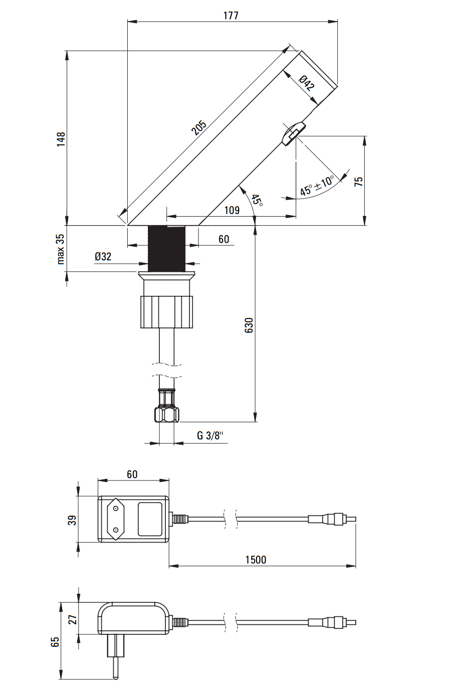 Deante Sense Bateria umywalkowa bezdotykowa bez regulacji temperatury - 230V/6V