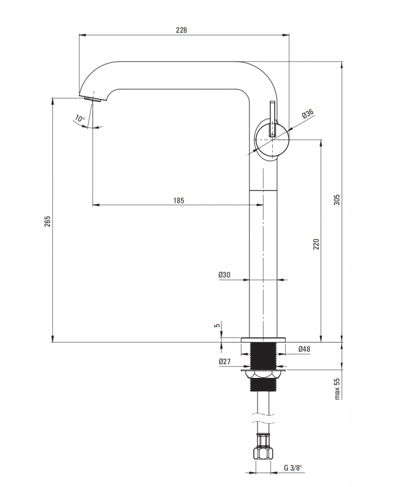 Deante Silia bateria umywalkowa wysoka z prostokątną wylewką
