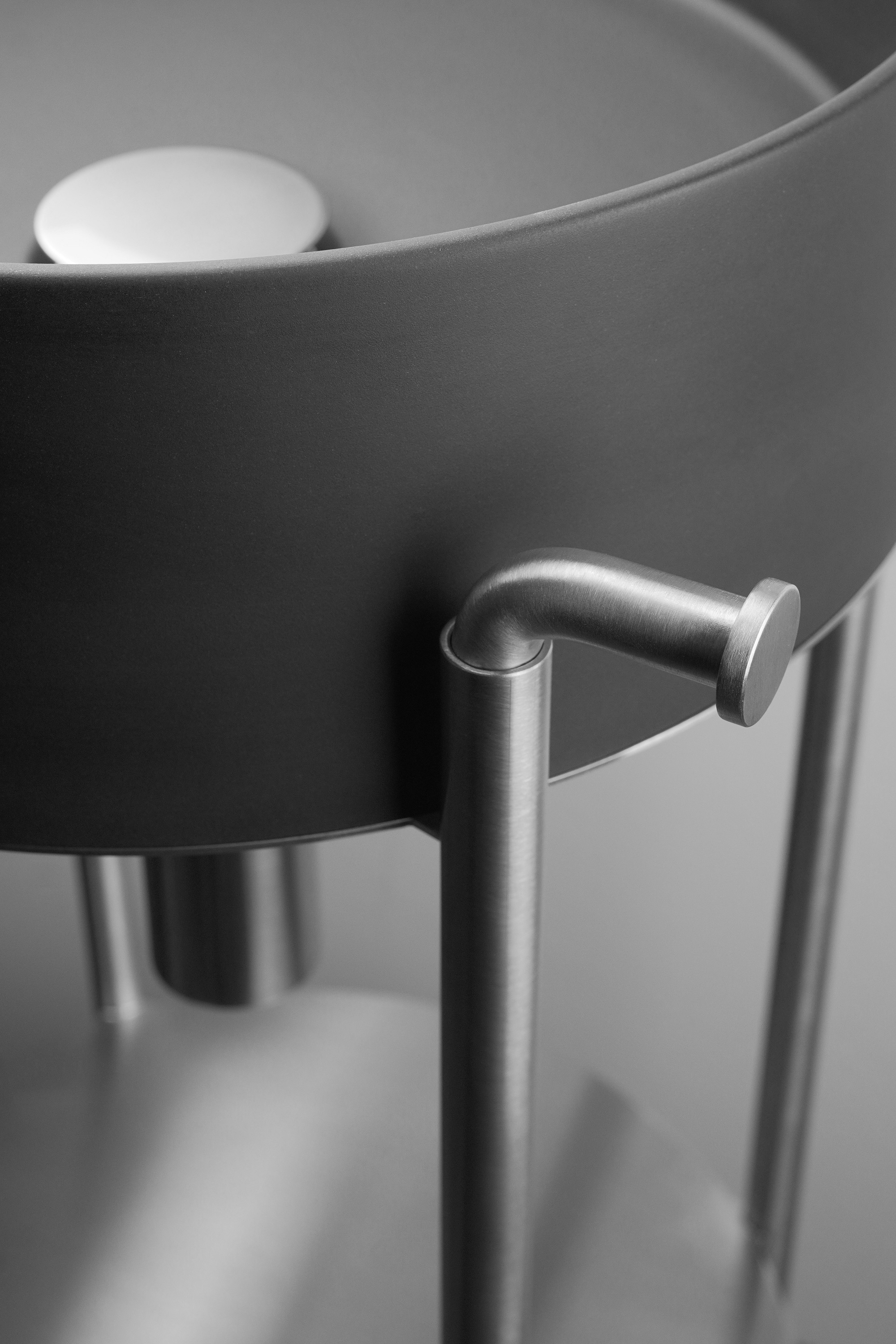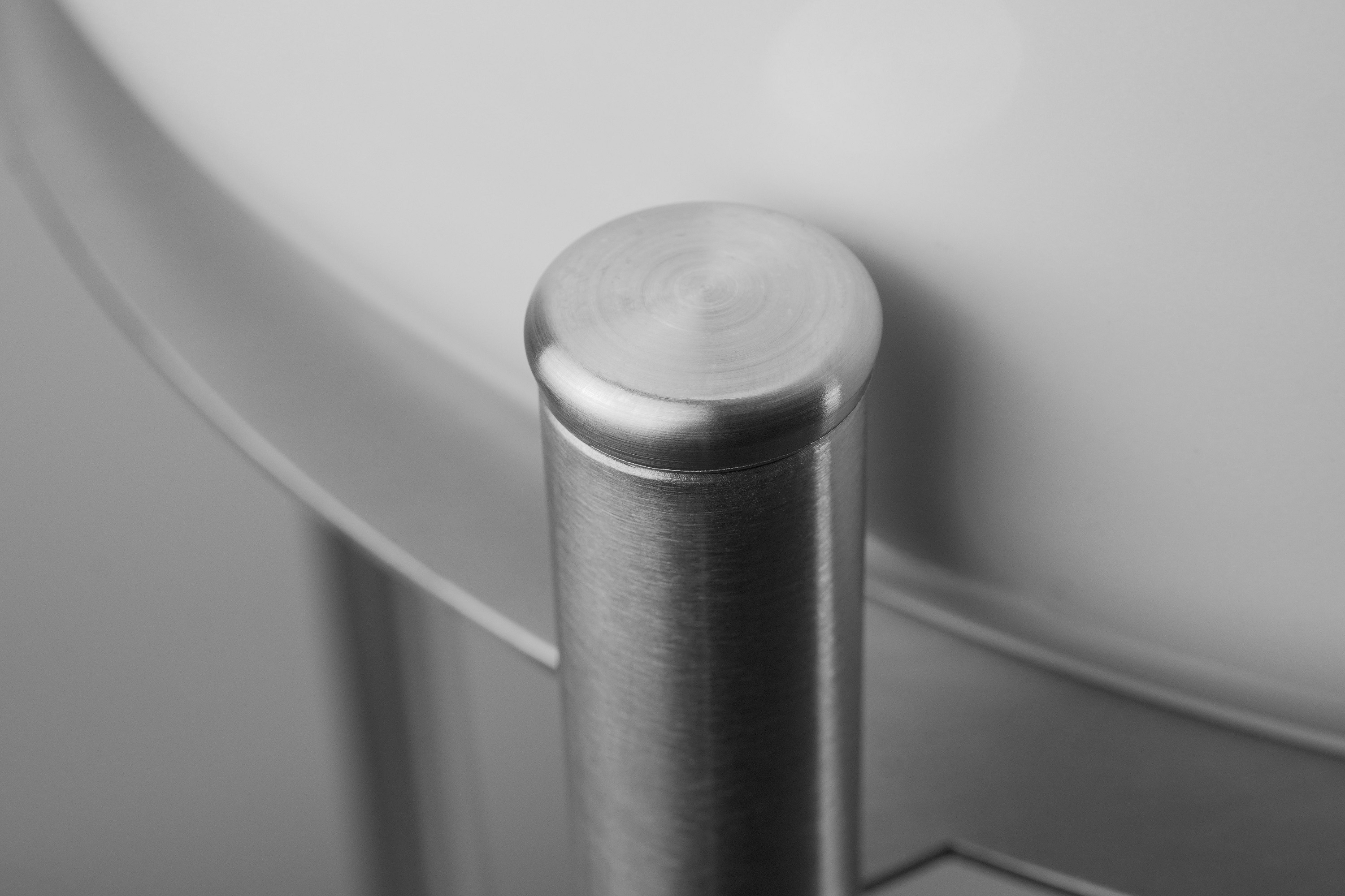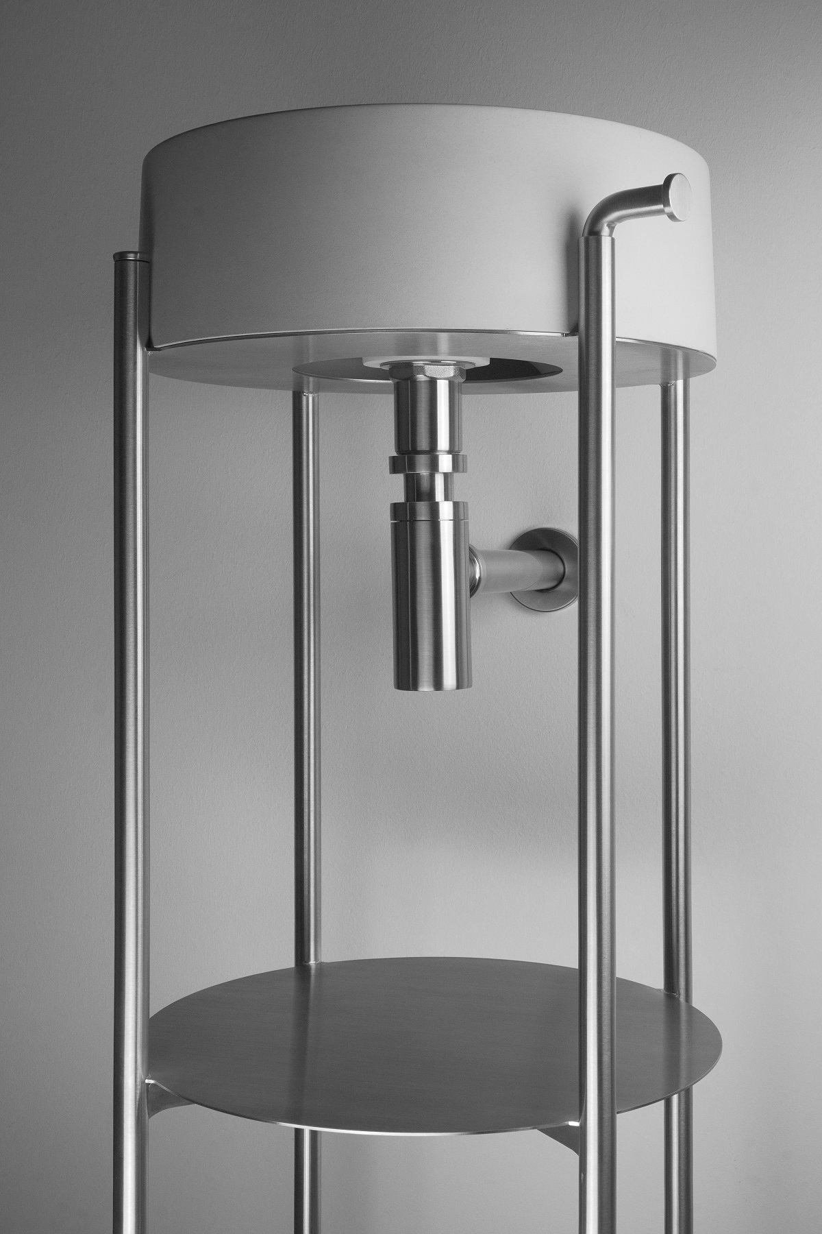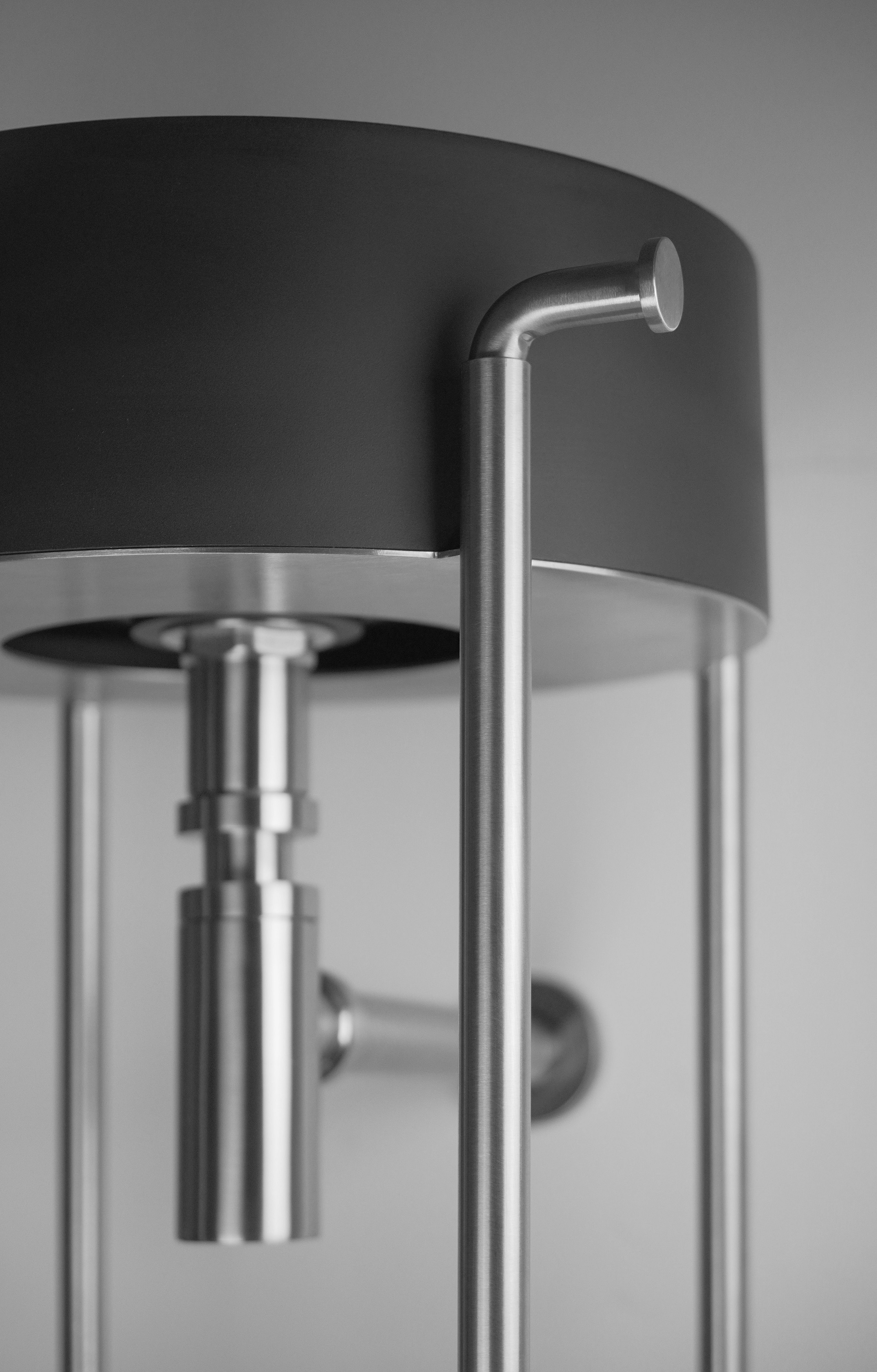 To designerski mebel dedykowany umywalkom ceramicznym i granitowym z tej samej serii. Wykonany został z wysokogatunkowej stali szlachetnej i wyposażony w praktyczne elementy takie jak półka na kosmetyki czy haczyk na ręcznik. Konsolę można postawić pod ścianą w towarzystwie baterii ściennej lub podtynkowej, alb na środku łazienki przy baterii wolnostojącej, kolumnowej.