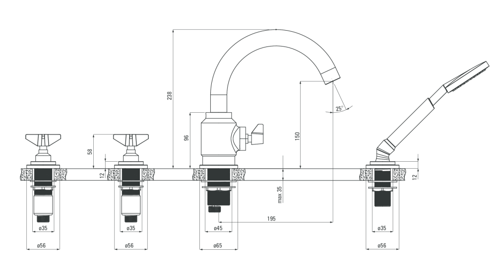 Deante Temisto Nero bateria wannowa 4-otworowa