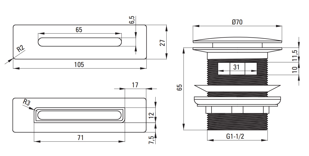 Deante zestaw akcesoriów do wanny - korek click-clack i przelew prostokątny