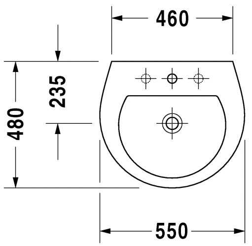 Umywalka z półką, z otworem na baterię, z otworem przelewowym.