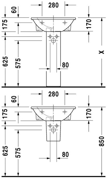 Możliwość kompletowania umywalki z postumentem lub półpostumentem.
