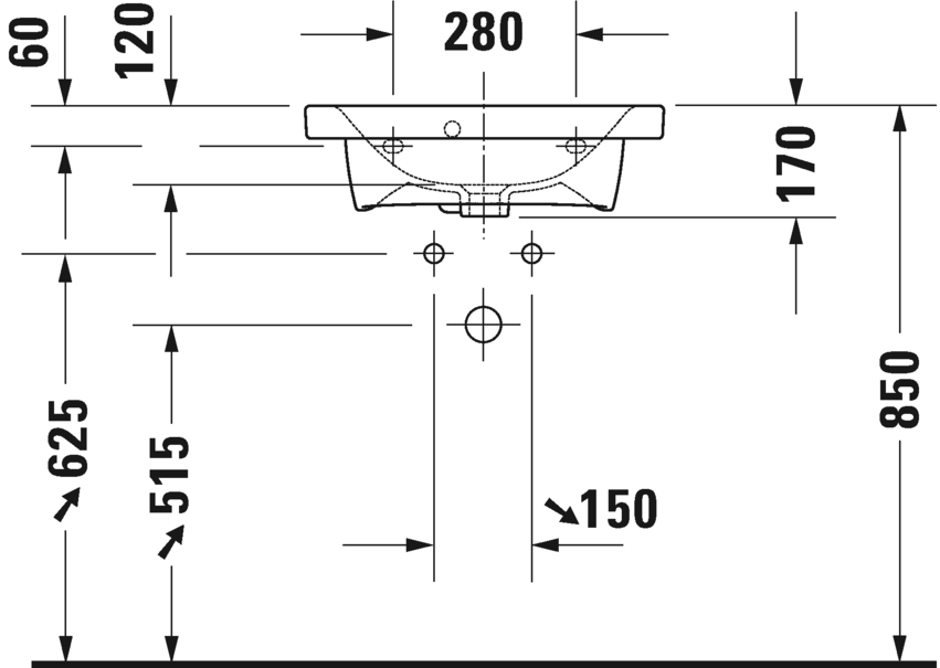 DuraStyle Umywalka Compact z przelewem, z półką na baterię, od spodu glazurowana, 635 mm
