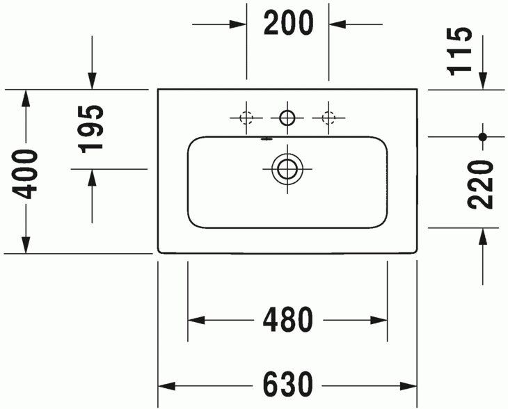 ME by Starck Compact Umywalka, umywalka meblowa z przelewem, z półką na baterię, z otworem na baterię, 630 x400mm