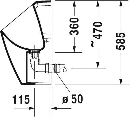 suchy, odpływ poziomy Ø 50 mm, syfon i mocowanie w komplecie