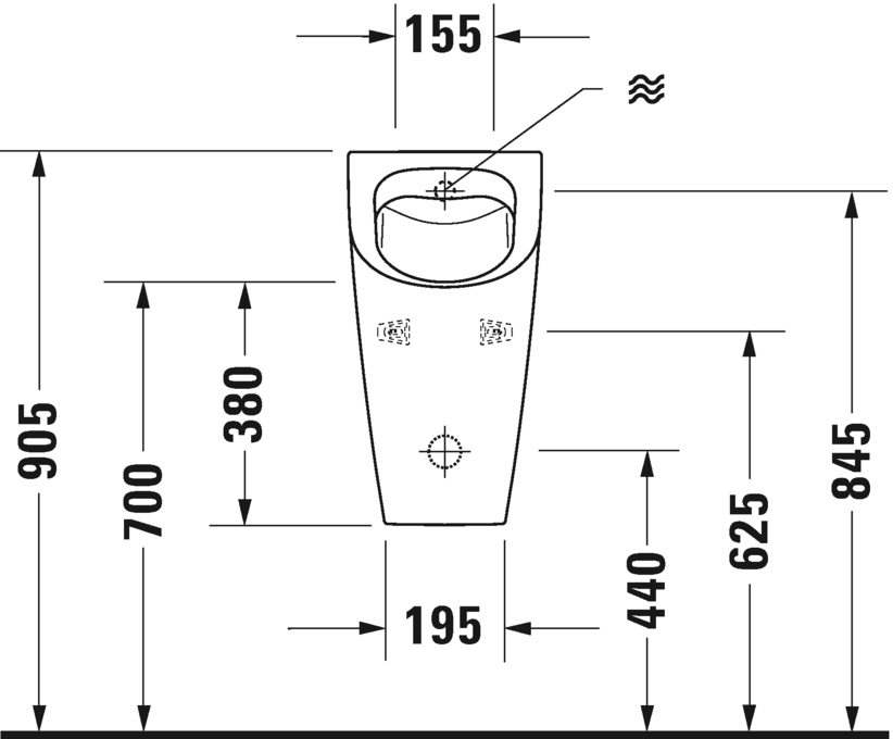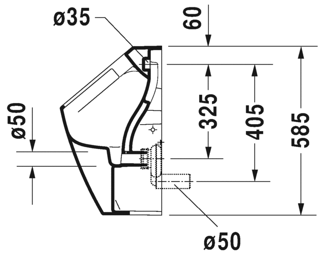 ME by Starck Pisuar Duravit Rimless bez rantu spłukującego, dopływ osłonięty, z zasysaniem, odpływ poziomy, mocowanie w komplecie