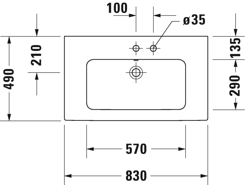 z przelewem, z półką na baterię, z jednym otworem pod baterię 830 x490mm