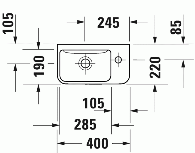 bez przelewu, z półką na baterię, otwór na baterię z prawej strony, mocowanie w komplecie, od spodu glazurowana, 400 mm