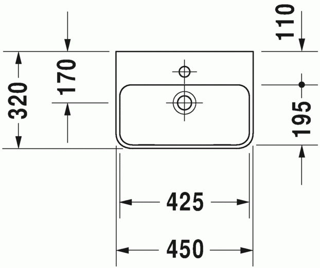 z przelewem, z półką na baterię, od spodu glazurowana, 450 mm