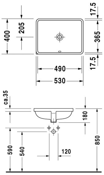 Umywalka bez półki, bez otworu na baterię, z otworem przelewowym.