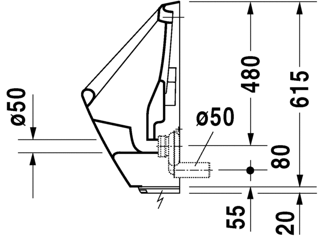 Elektroniczny pisuar na baterie, dopływ osłonięty, z zasysaniem, odpływ poziomy, elektronika w komplecie