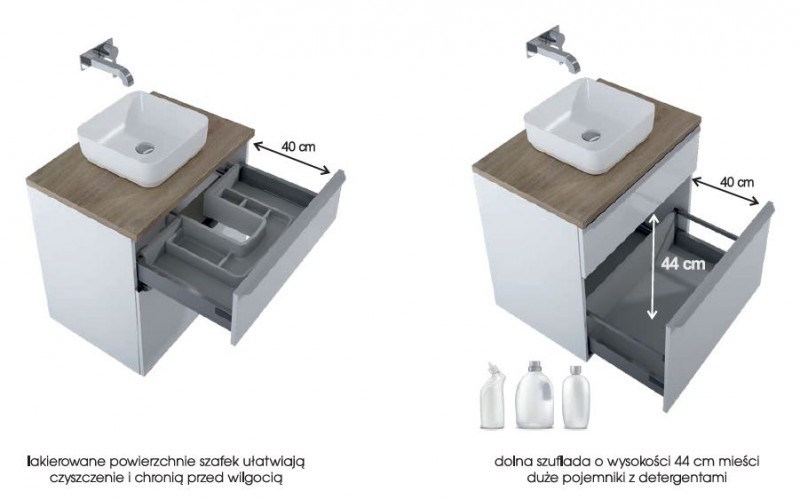 Do kompletowania z umywalkami Metis 920, Iwa 90 bądź blatem.