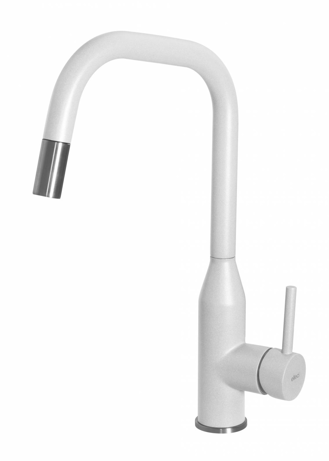 Nowoczesna, wysmakowana wzorniczo bateria z wyciąganą wylewką.