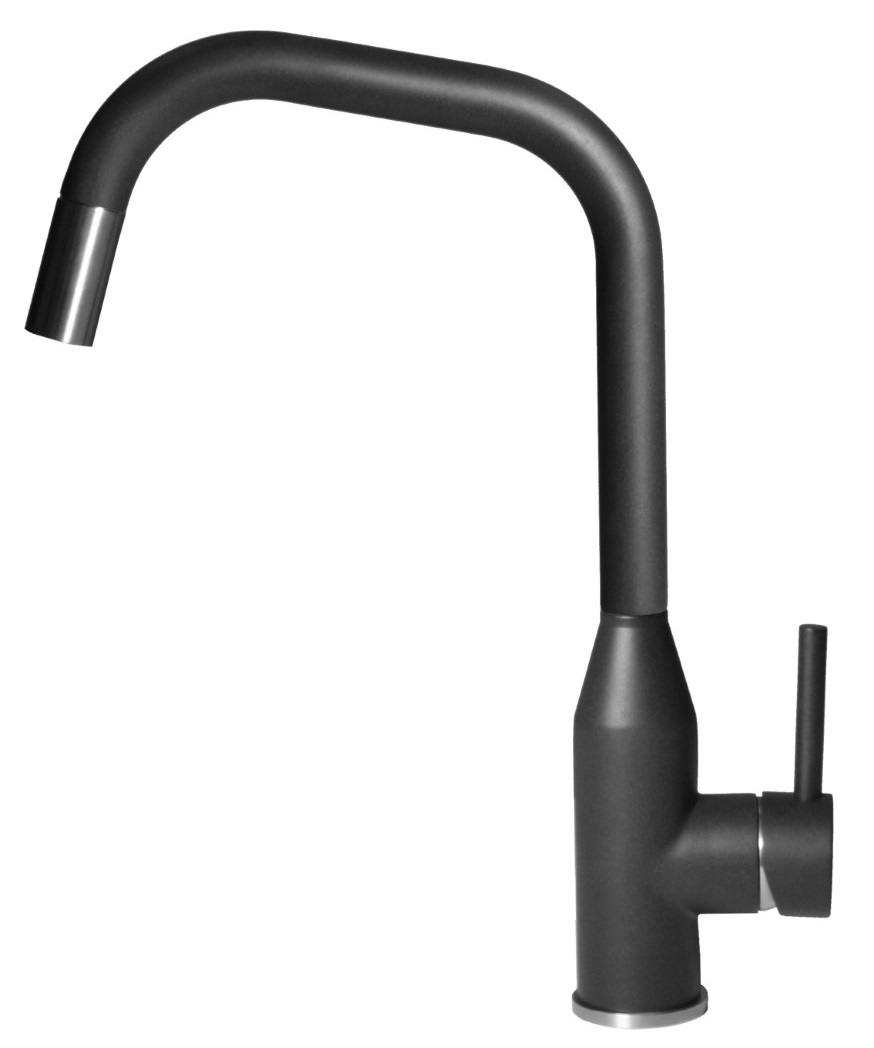 Nowoczesna, wysmakowana wzorniczo bateria z wyciąganą wylewką.