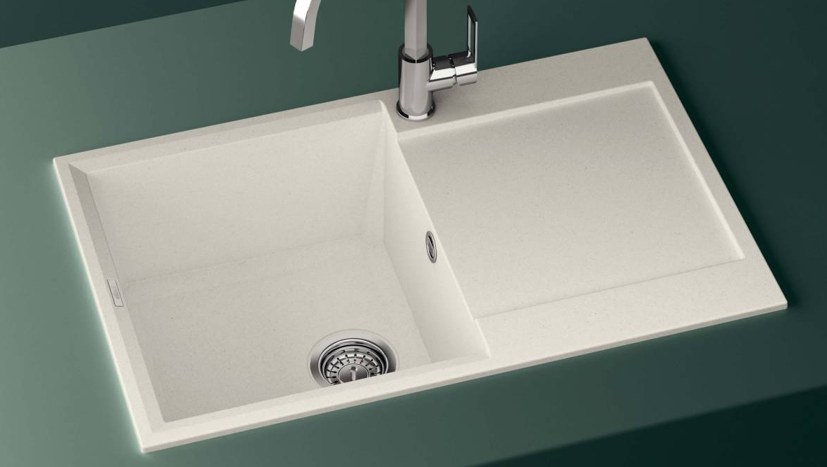 GRANITEK - materiał powstały z połączenia granitu oraz żywicy akrylowej, dodatkowo ulepszony przez redukcje wielkości cząsteczek granitowych co wpłynęło na znaczne wygładzenie powierzchni i ułatwia pielęgnację zlewozmywaka. Ma naturalny wygląd kamienia.