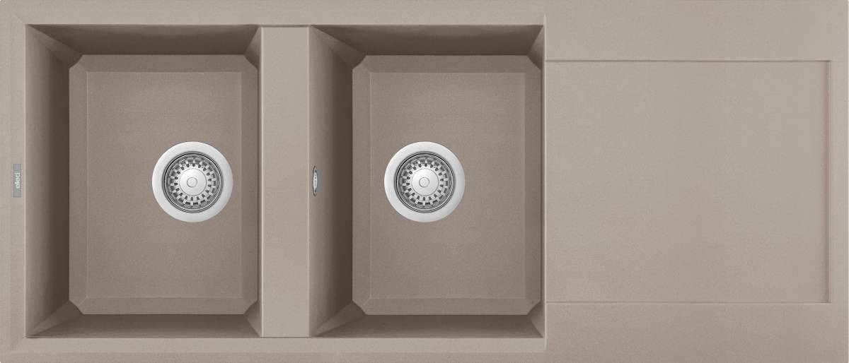 GRANITEK - materiał powstały z połączenia granitu oraz żywicy akrylowej, dodatkowo ulepszony przez redukcje wielkości cząsteczek granitowych co wpłynęło na znaczne wygładzenie powierzchni i ułatwia pielęgnację zlewozmywaka. Ma naturalny wygląd kamienia.