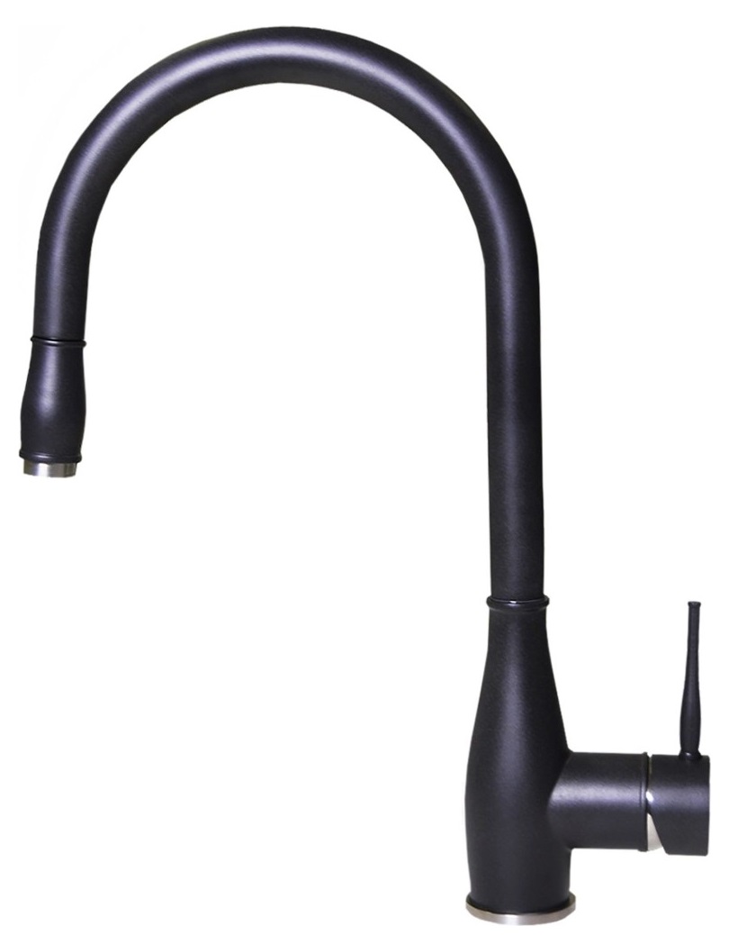 Nowoczesna, wysmakowana wzorniczo bateria z wyciąganą wylewką.
