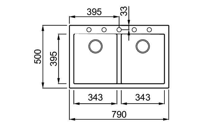 ELLECI Quadra 350 zlewozmywak dwukomorowy bez ociekacza