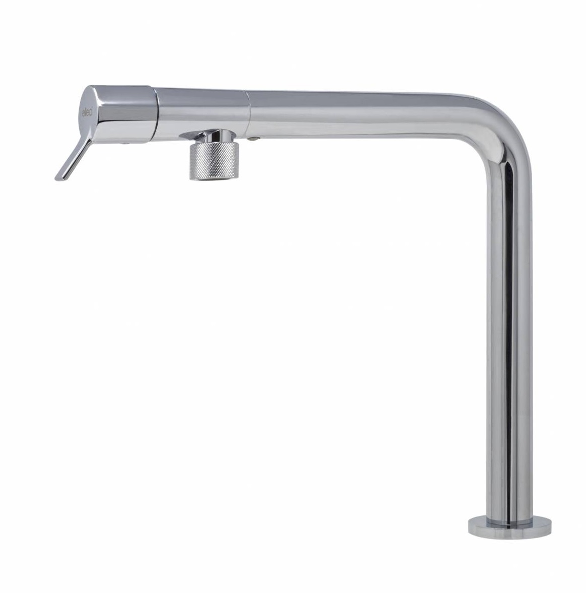 Designerska bateria z dźwignią umieszczoną nietypowo - na końcu wylewki. Jest to nie tylko nietuzinkowe rozwiązanie, ale także bardzo wygodne. Oferowana w wykończeniach: chrom i półmatowa czerń.