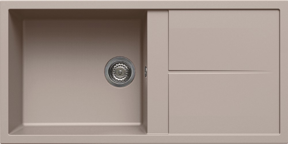 GRANITEK - materiał powstały z połączenia granitu oraz żywicy akrylowej, dodatkowo ulepszony przez redukcje wielkości cząsteczek granitowych co wpłynęło na znaczne wygładzenie powierzchni i ułatwia pielęgnację zlewozmywaka. Ma naturalny wygląd kamienia.