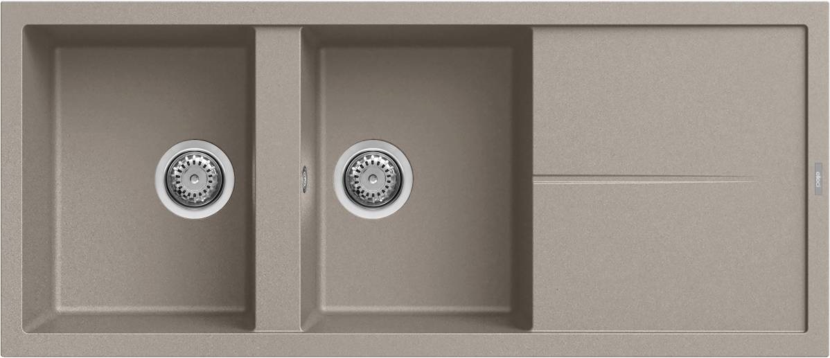 GRANITEK - materiał powstały z połączenia granitu oraz żywicy akrylowej, dodatkowo ulepszony przez redukcje wielkości cząsteczek granitowych co wpłynęło na znaczne wygładzenie powierzchni i ułatwia pielęgnację zlewozmywaka. Ma naturalny wygląd kamienia.
