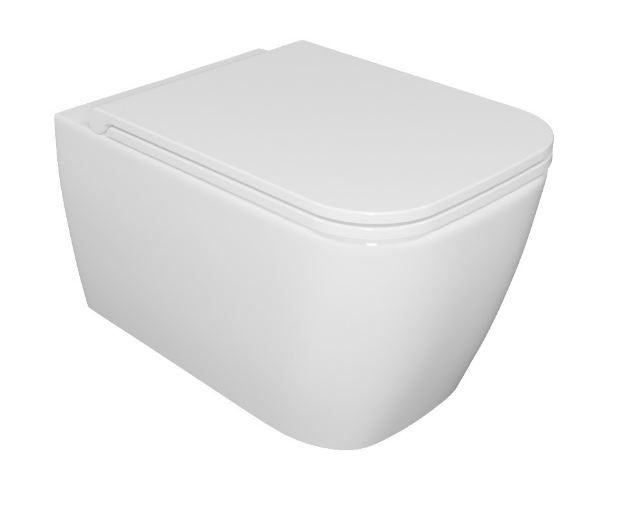 Miska wisząca bezrantowa WC Quadra NO-RIM w kolorze biały POŁYSK posiada ukryte mocowania, w komplecie z deską WC SLIM wolnoopadającą z Duroplastu z metalowymi zawiasami.