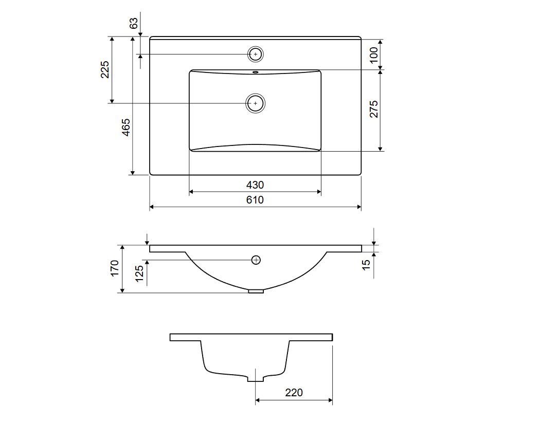 Umywalka dostępna jest w dwóch rozmiarach, z otworem na baterię i przelewem.