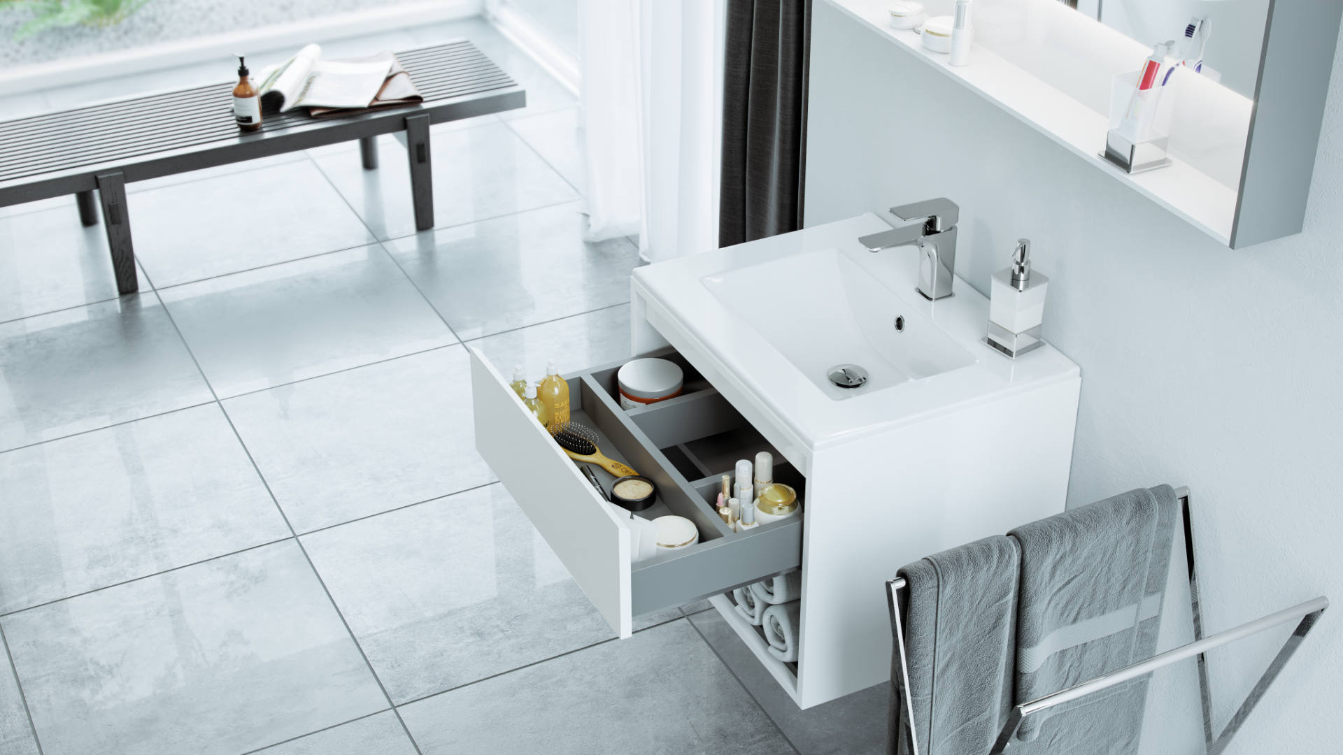 Miejsce odkładcze ułatwia organizację przestrzeni strefy umywalki.