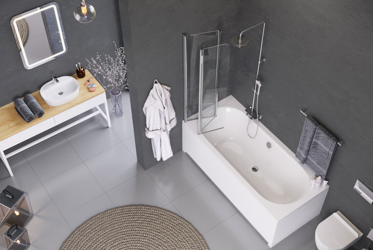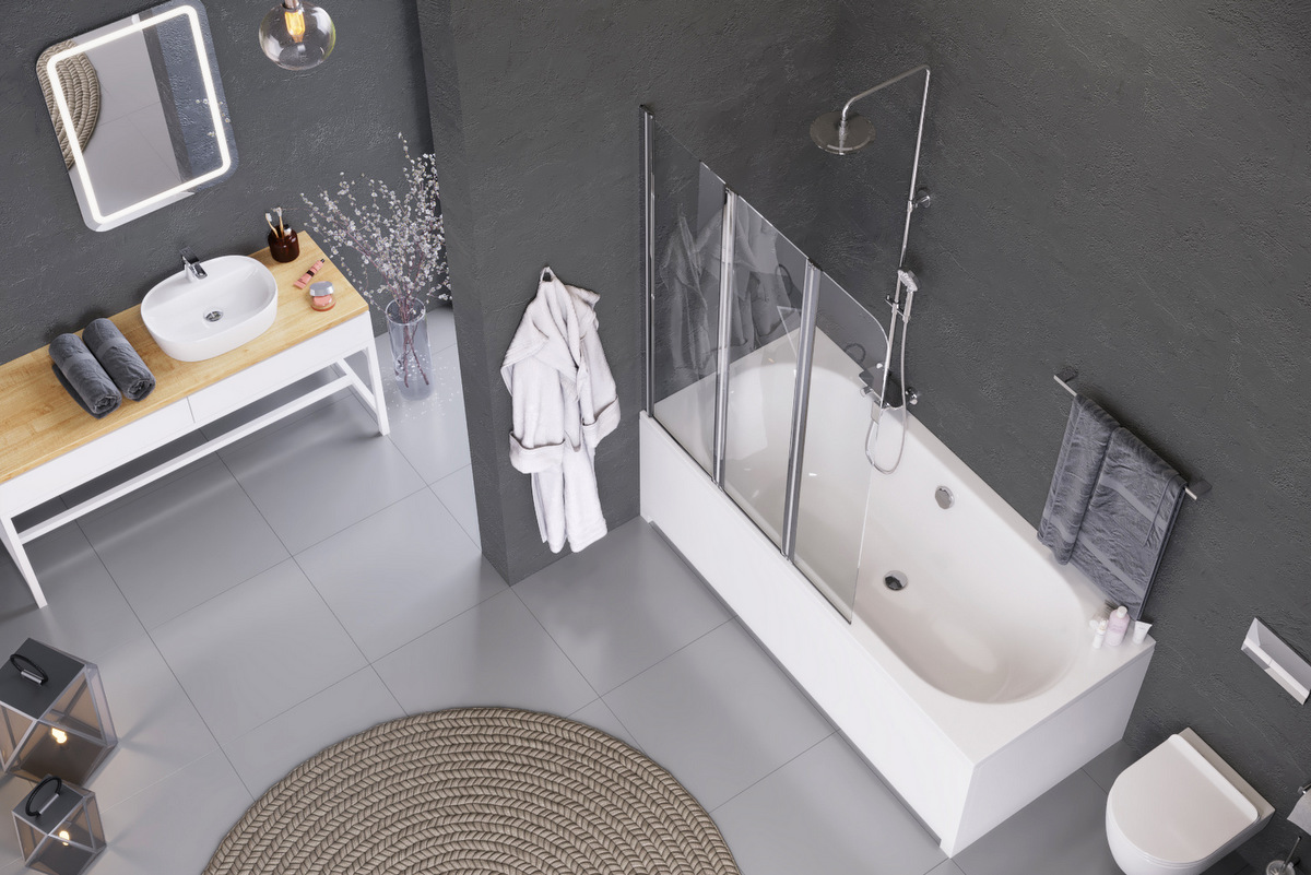 Parawan wannowy to kompromis dla tych, którzy mimo małej przestrzeni w łazience chcą posiadać jednocześnie wannę i kabinę.