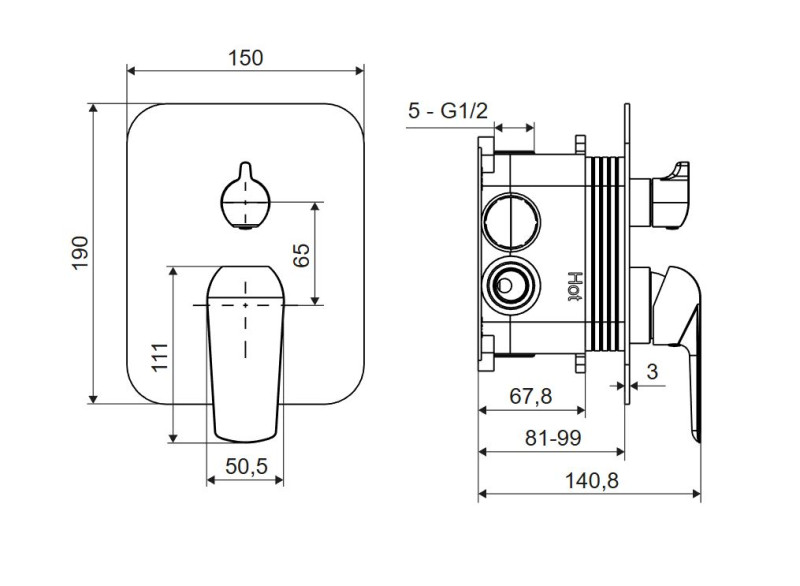 Bateria prysznicowo-wannowa podtynkowa z serii Clever 2.0 została wyposażona w system Fix-Box, który ułatwia montaż oraz zapewnia stały dostęp rewizyjny do mechanizmu baterii. Mechaniczny przełącznik funkcji umożliwia wygodny wybór wypływu wody, a głowica Kerox pozwala na płynną i dokładną regulację temperatury oraz natężenia strumienia.