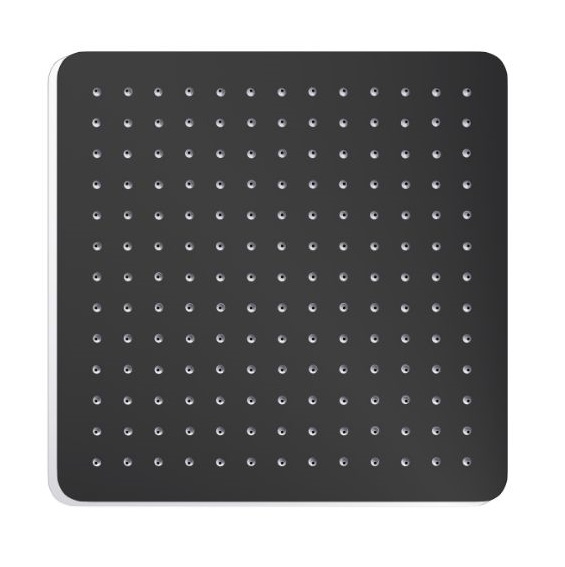 Kwadratowa deszczownia wykonana ze stali nierdzewnej w wykończeniu chrom o wymiarach 200×200mm o grubości 2mm. Dostępna także w innych rozmiarach. Idealna do komponowania z ramionami kwadratowymi ściennymi lub sufitowymi.