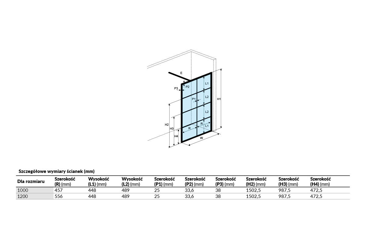 Ścianka dostępna jest w dwóch rozmiarach 1000x2000 oraz 1200x2000 mm, maksymalna długość wspornika to 980 mm.