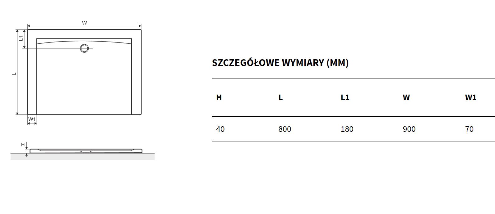 Brodzik Forma X jest wykonany z trwałego tworzywa, ze strukturą LavexSlate. Brodzik jest bardzo wytrzymały, higieniczny a strukturalna powierzchnia zapewnia doskonałą przyczepność. Niski próg (40 mm) delikatnie zaznacza przestrzeń przeznaczoną do kąpieli i zabezpiecza podłogę przed zachlapaniem, co oszczędza sprzątania po długich, odprężających prysznicach.