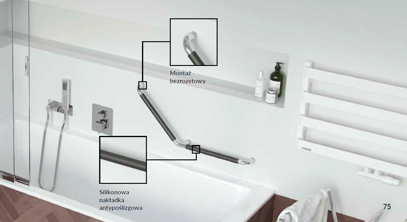Seria Hendi to oferta uchwytów łazienkowych, które zapewnią bezpieczne i komfortowe korzystanie z łazienki. Wykonane są z mosiądzu z silikonową nakładką antypoślizgową w kolorze czarnym.
