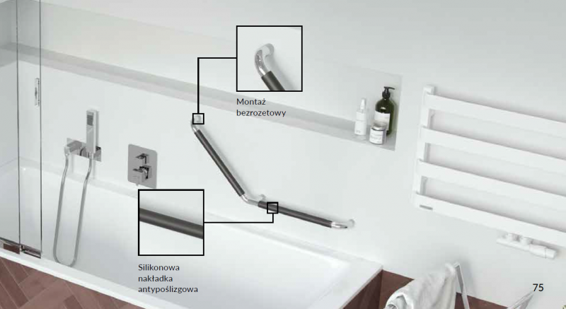 Seria Hendi to oferta uchwytów łazienkowych, które zapewnią bezpieczne i komfortowe korzystanie z łazienki. Wykonane są z mosiądzu z silikonową nakładką antypoślizgową w kolorze czarnym.
