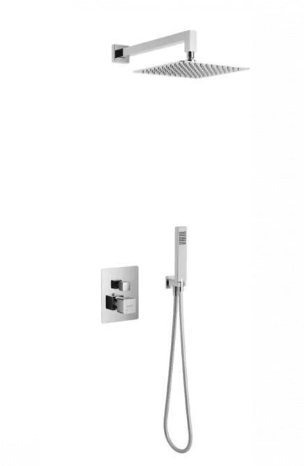 Głowica kwadratowa 250x250 mm z ramieniem kwadratowym może być instalowana na wybranej wysokości, a zestaw punktowy będzie idealnym rozwiązaniem dla użytkowników, którzy nie chcą moczyć włosów podczas krótkiej kąpieli.