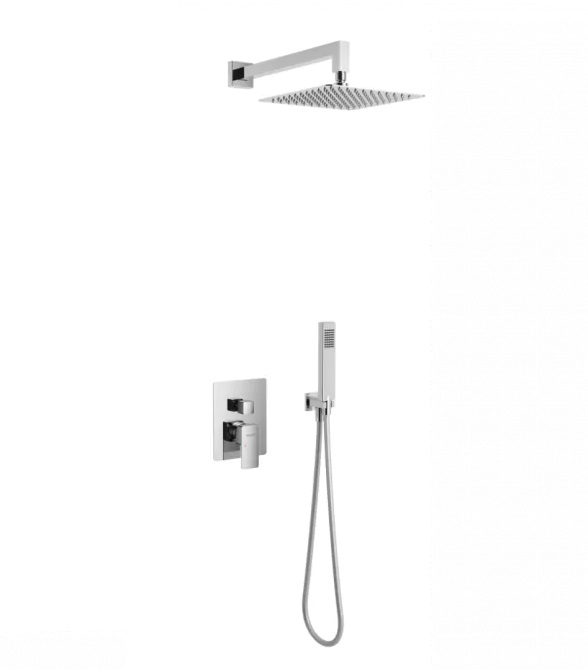 Głowica kwadratowa 250x250 mm z ramieniem kwadratowym może być instalowana na wybranej wysokości, a zestaw punktowy będzie idealnym rozwiązaniem dla użytkowników, którzy nie chcą moczyć włosów podczas krótkiej kąpieli.