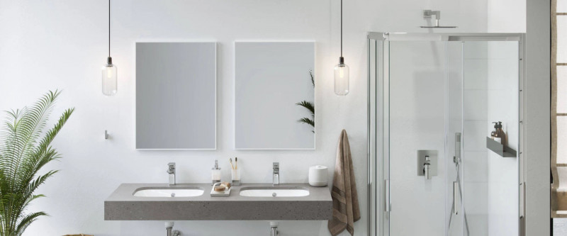 Głowica kwadratowa 250x250 mm z ramieniem kwadratowym może być instalowana na wybranej wysokości, a zestaw punktowy będzie idealnym rozwiązaniem dla użytkowników, którzy nie chcą moczyć włosów podczas krótkiej kąpieli.