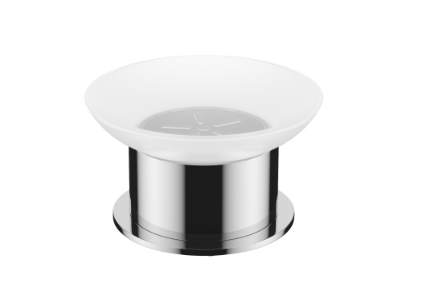 Mydelniczka szklana stojąca KOBO składa się z metalowej podstawki oraz szklanej mydelniczki. Metalowa podstawka wyposażona jest w plastikową obręcz zabezpieczającą szklany element przed uszkodzeniem. Podstawka posiada specjalne naklejki chroniące powierzchnię przed zarysowaniem.