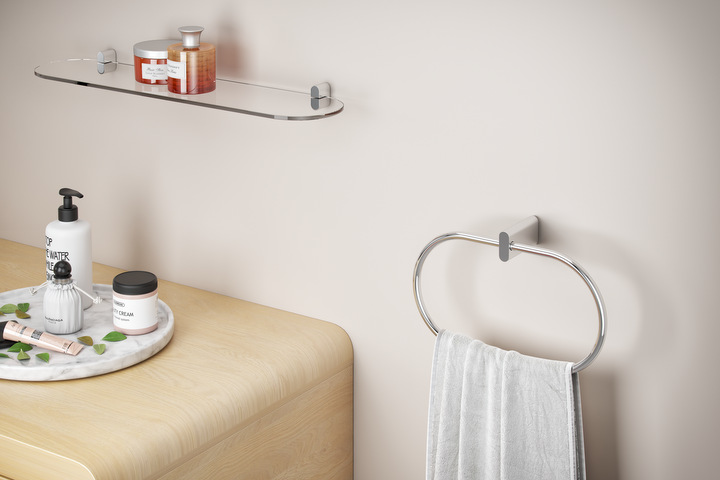 Reling na ręcznik KOBO składa się z metalowego uchwytu wykonanego z wysokiej jakości mosiądzu pokrytego chromem połączonego z elementem pozwalającym na odwieszenie ręcznika. Uchwyt posiada ukryty element montażowy pozwalający na eleganckie zamontowanie produktu na ścianie.
