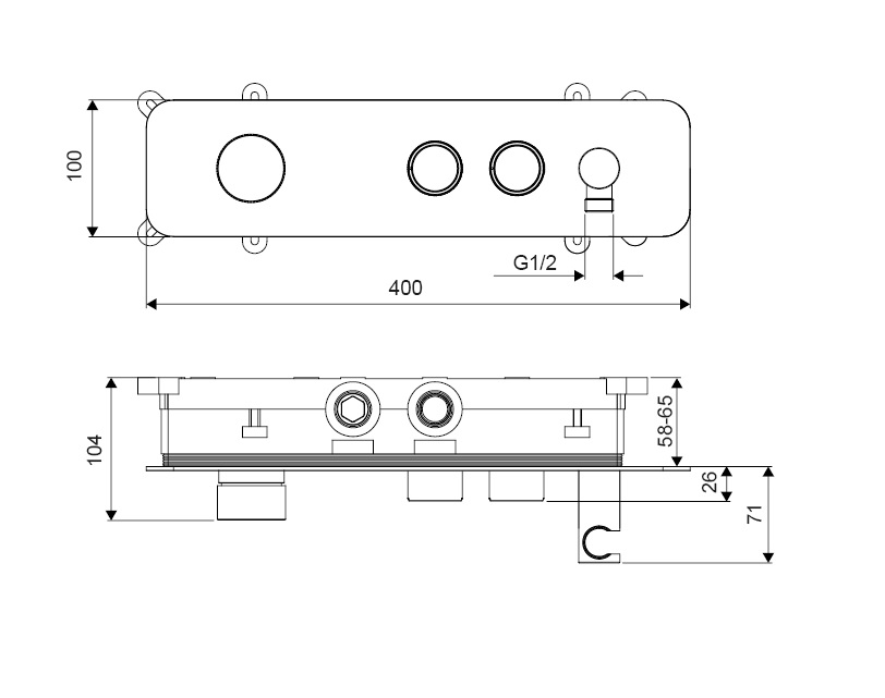 Bateria prysznicowo-wannowa 2 drożna: