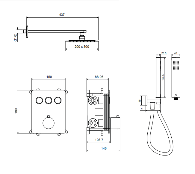 Zestaw podtynkowy prysznicowo-wannowy Krotos z 3 funkcjami składa się z