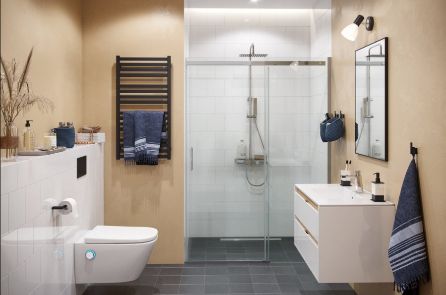 Zestaw prysznicowy Rain Krotos to idealne rozwiązanie z głowicą górną i słuchawką pod prysznic, gdy w łazience istnieją standardowe wyprowadzenia wody pod baterię prysznicową.