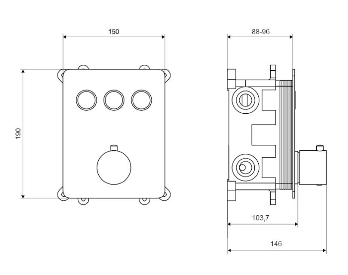 Montaż baterii jest podtynkowy oparty o Fix-box podtynkowy.