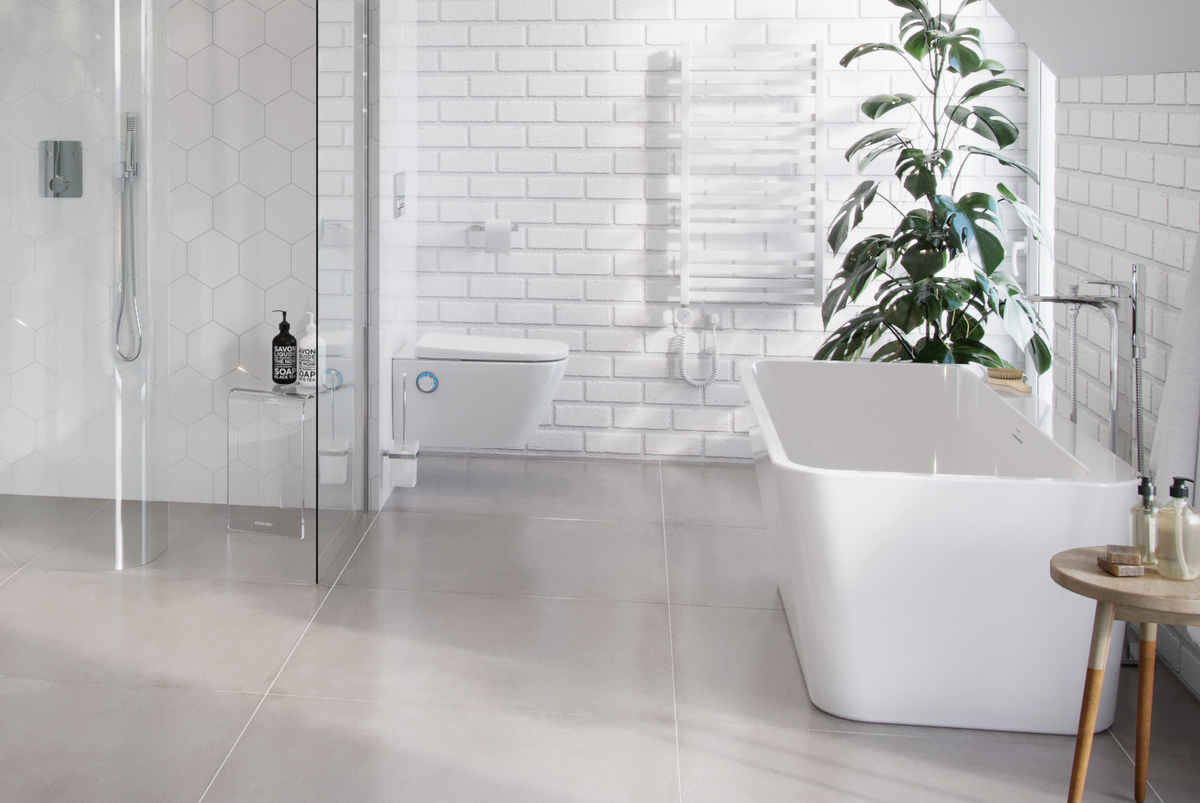 Wanna ze zintegrowaną obudową dodatkowo wzmocniona powierzchnia odkładcza, która umożliwia zamontowanie baterii 4-otworowej nawannowej.